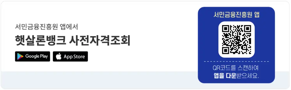 ▶︎ 하지만 협약은행에 대출을 신청하기 전 서민금융진흥원 App을 통해 자격대상 여부를 조회 후 은행을 방문하시면 보다 편리하게 이용하실 수 있습니다.
